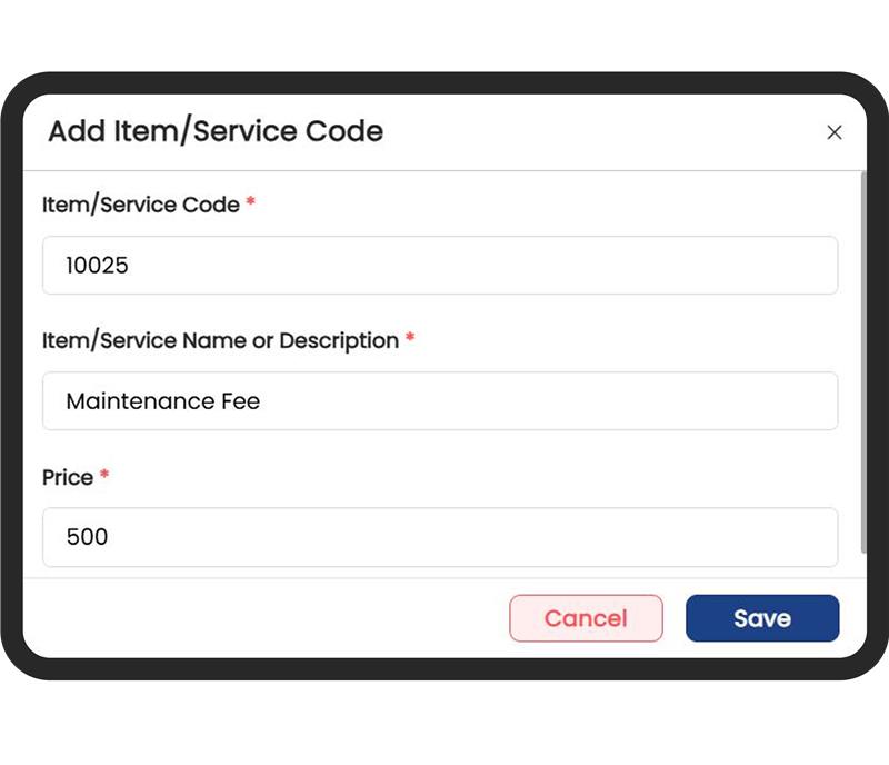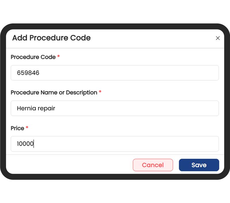 Once saved, these codes can be quickly selected during billing or documentation, saving time and ensuring pricing consistency across records.